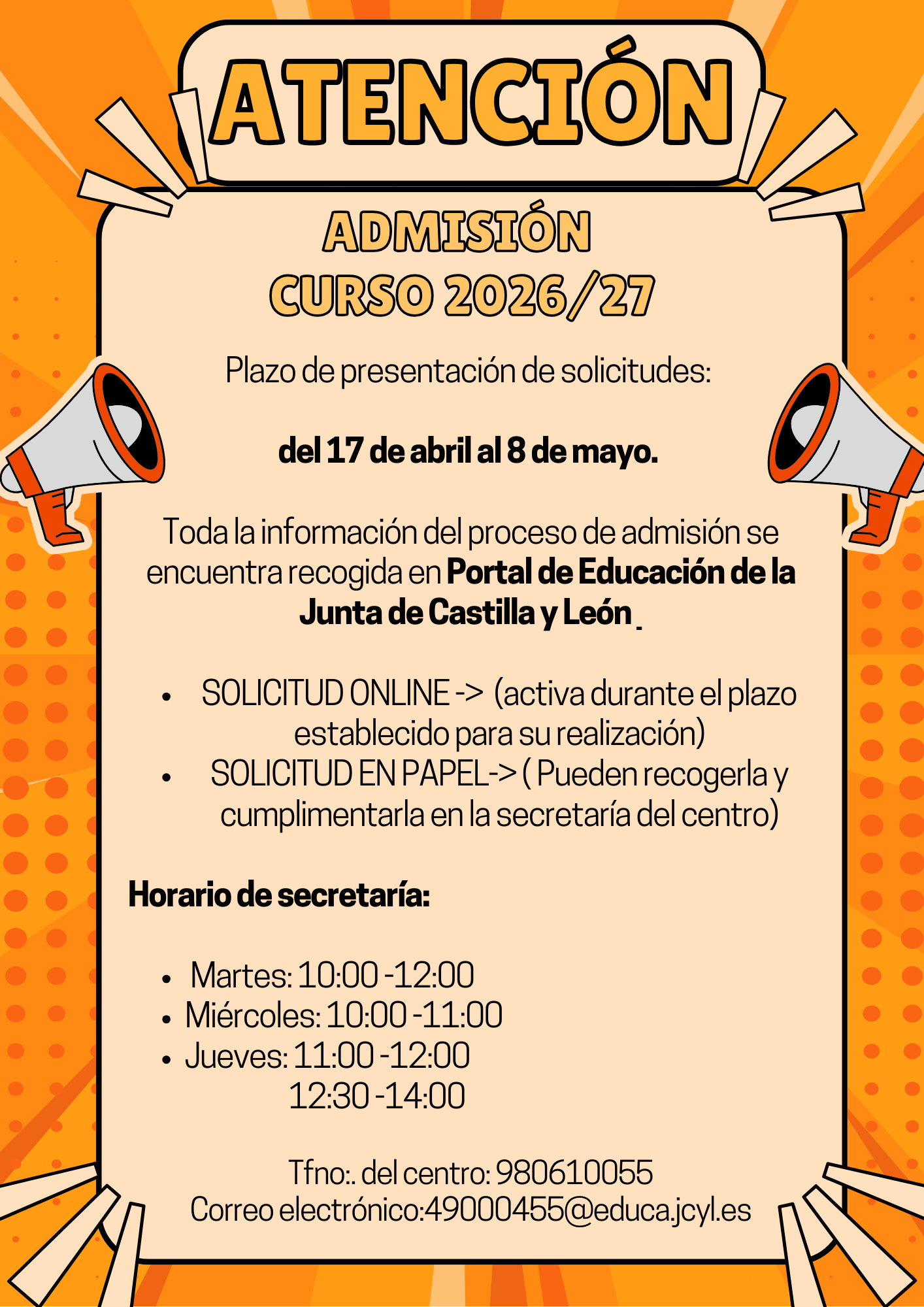 INFORMACIÓN ADMISIÓN 2026/27 |